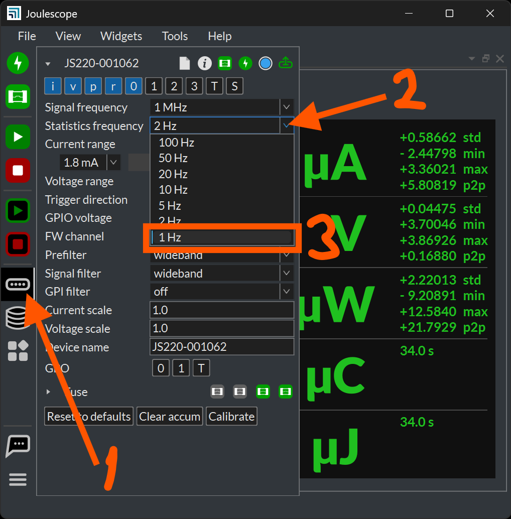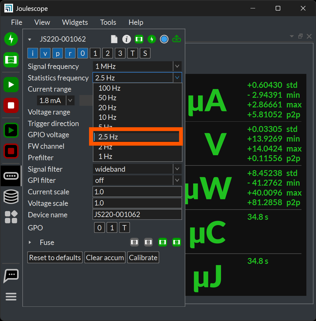 I don’t see a reason to break the standard 1, 2, 5 sequence to add 2.5 Hz to the UI. I could see adding a “custom” setting, but that does not exist today. If you want 2.5 Hz today, you can hack the UI source code to add 2.5 Hz. You first have to clone the pyjoulescope_ui git repo and get it running in Python on your host computer. You can follow the instructions in the README.md.