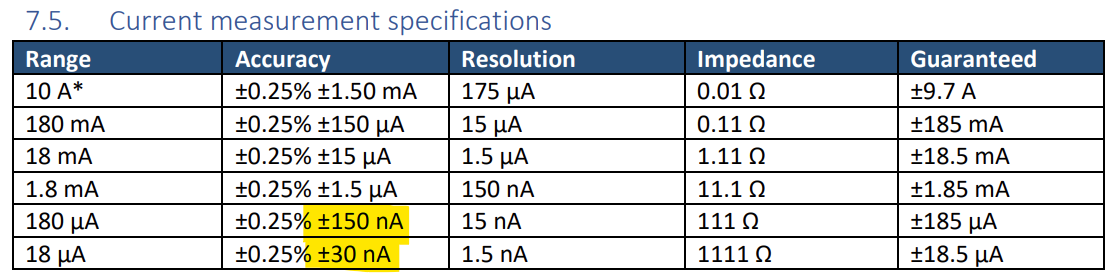 Hi @jamesl-dm - We do have a way to perform offset calibration today. In the Device Control widget, select Calibrate then click Start for Current offset. Although we say to disconnect all sensor terminals, this process will calibrate to any real current. This correction is applied before the autoranging computation, so significant variations will definitely alter autoranging behavior. This value can “argue” with the hardware overflow detection, which is unaffected by this offset change. 8.5 µA is 47% of the 18 µA range, which is enough to potentially cause strange autoranging behavior. Can you limit the minimum current range to 180 µA? 8.5 µA is only 5% of 180 µA, which is well within our design tolerances for this “disagreement”. The only downside is a slight increase in offset error, which is probably negligible given the J-Link variations: